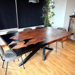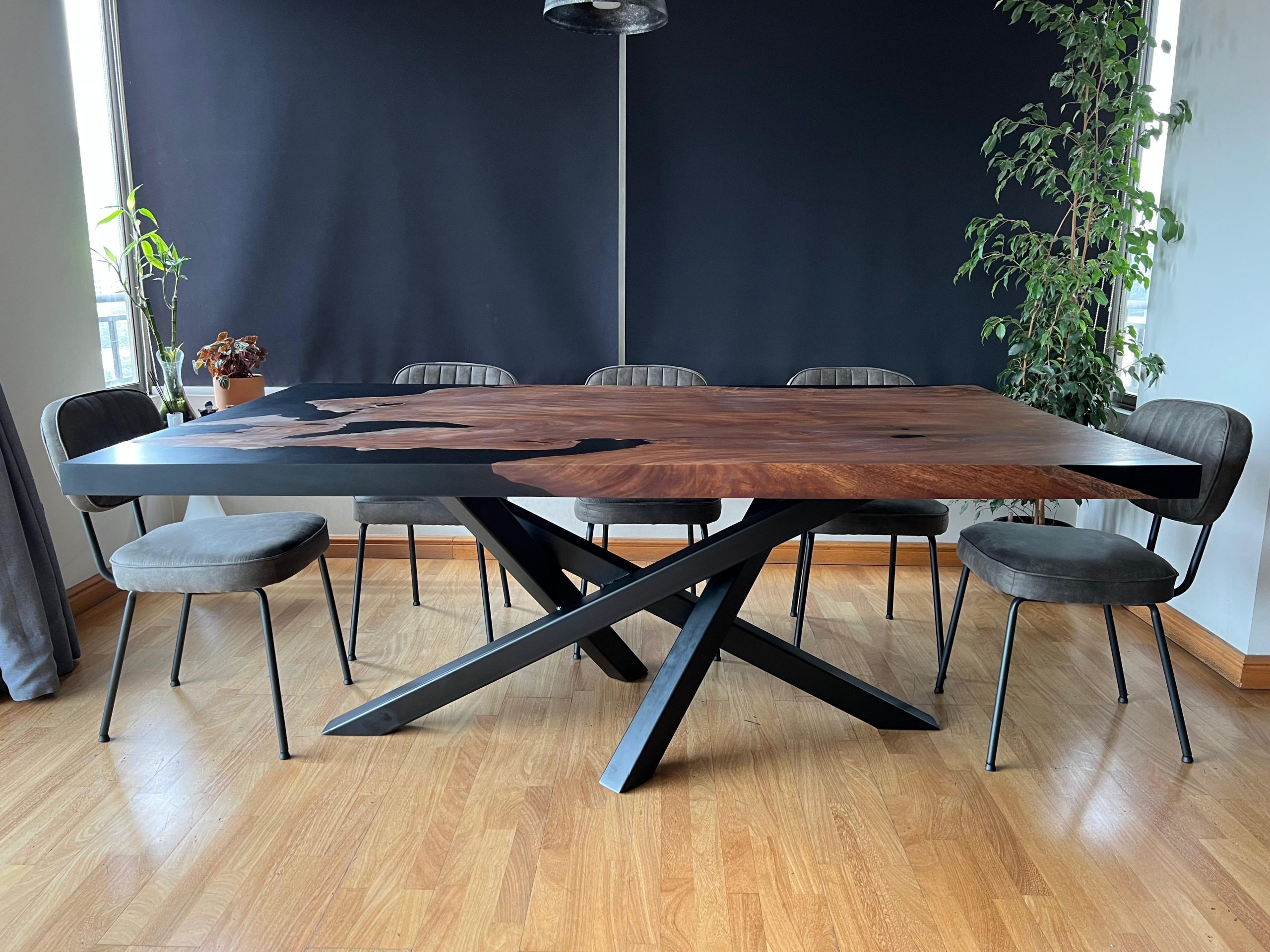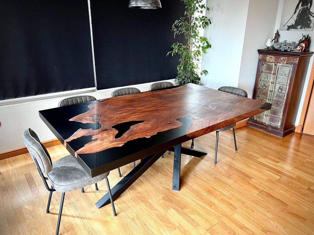 Hermosa mesa hecha en madera pochote (traida de Costa Rica) y resina epoxy negro mate